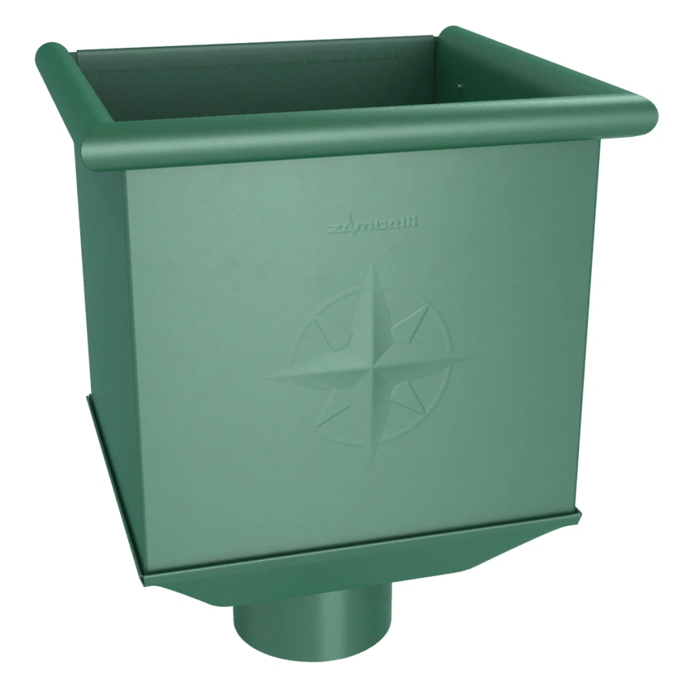 Kotlík kvadratický od Zambelli je určený predovšetkým na odvodnenie plochých striech, kde je zvodová rúra umiestnená na vonkajšej strane fasády. Kotlík sa montuje priamo na fasádu a vyžaduje pripravený otvor pre vpusť zo strechy.